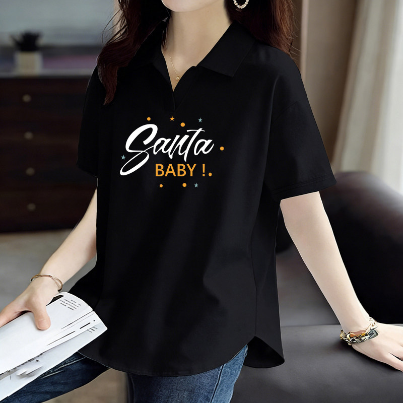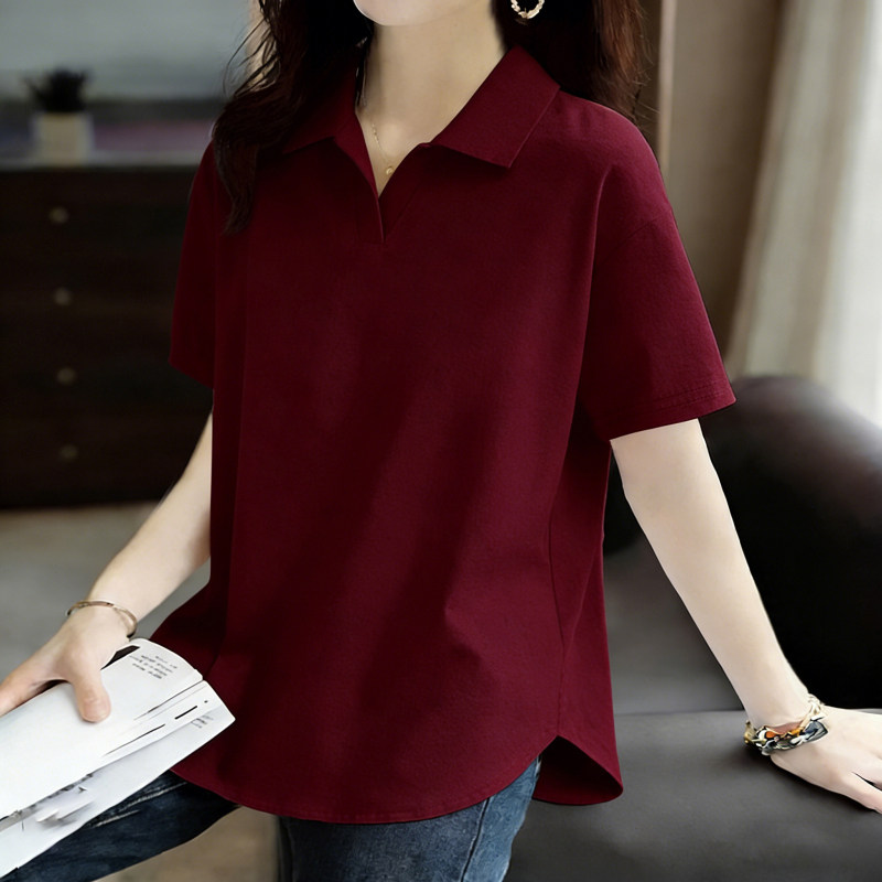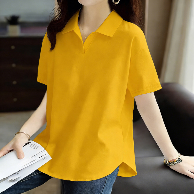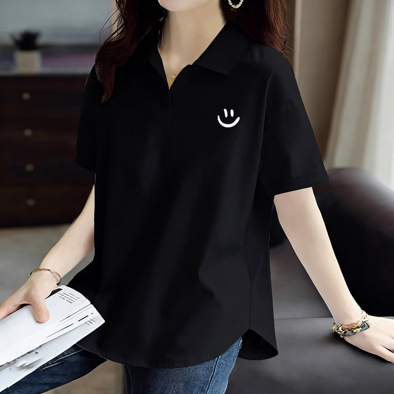 纯棉夏季韩版短袖POLO领上衣新款时尚宽松休闲运动百搭大码T恤女